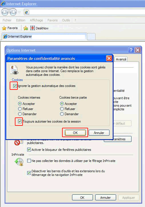 - Toujours autoriser les cookies de la session.